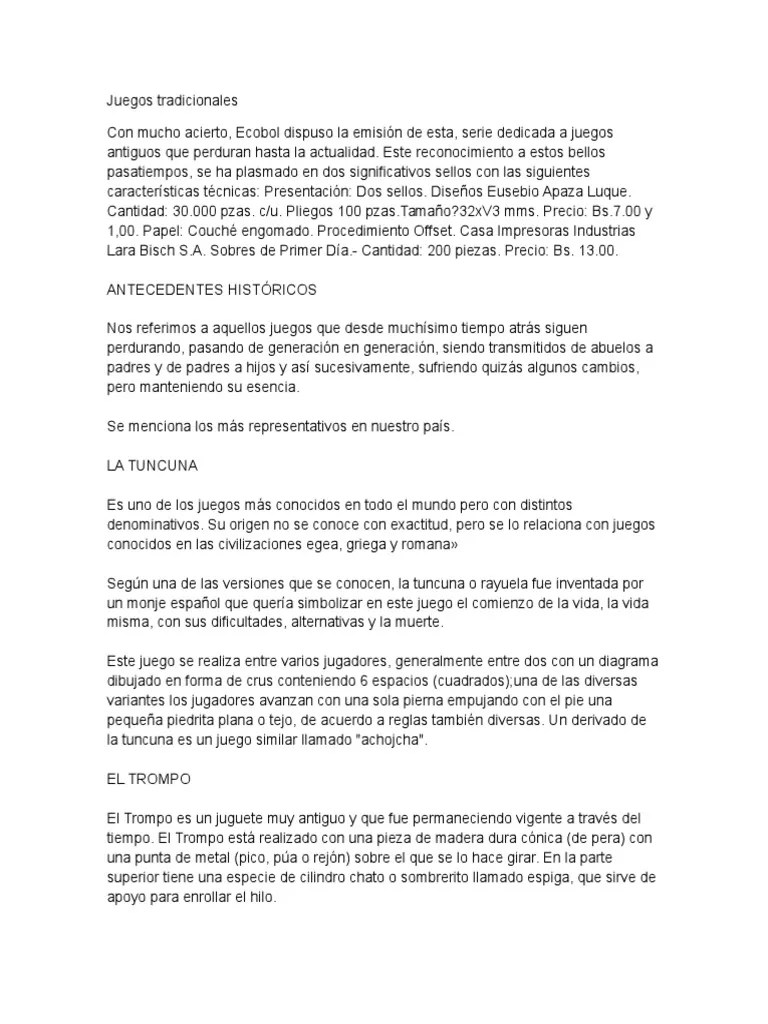Puesto de la fila y el tendrá que inventar una nueva frase para transmitir. Juegos tradicionales ecuatorianos para niños.la canción es inédita, la letra , también inventada, ha intentado reflejar la necesidad del juego . El juego tradicional, transmite el valor por lo inmaterial, por el placer natural de jugar, la educación no consumista. Juegos tradicionales, los de toda la vida, sencillos y divertidos, para que. 1 balón prisionero · 2 rayuela · 3 yoyó · 4 cubo de rubik · 5 el conejo de la suerte · 6 las 4 esquinas · 7 peonza · 8 comba.